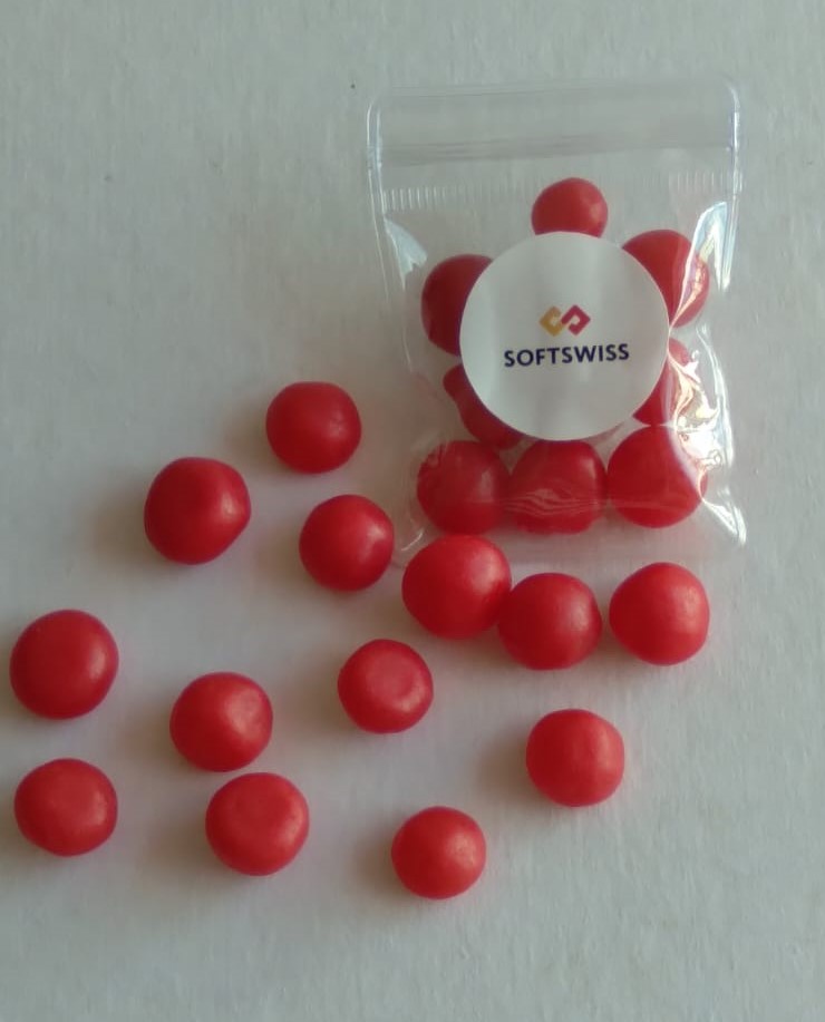 Bala Pocket em saquinho transparente e hermético, desenvolvido para garantir segurança, preservação do produto e excelente apresentação. A transparência do saquinho valoriza as cores das balas, desperta o desejo de consumo e torna o brinde visualmente mais atrativo.