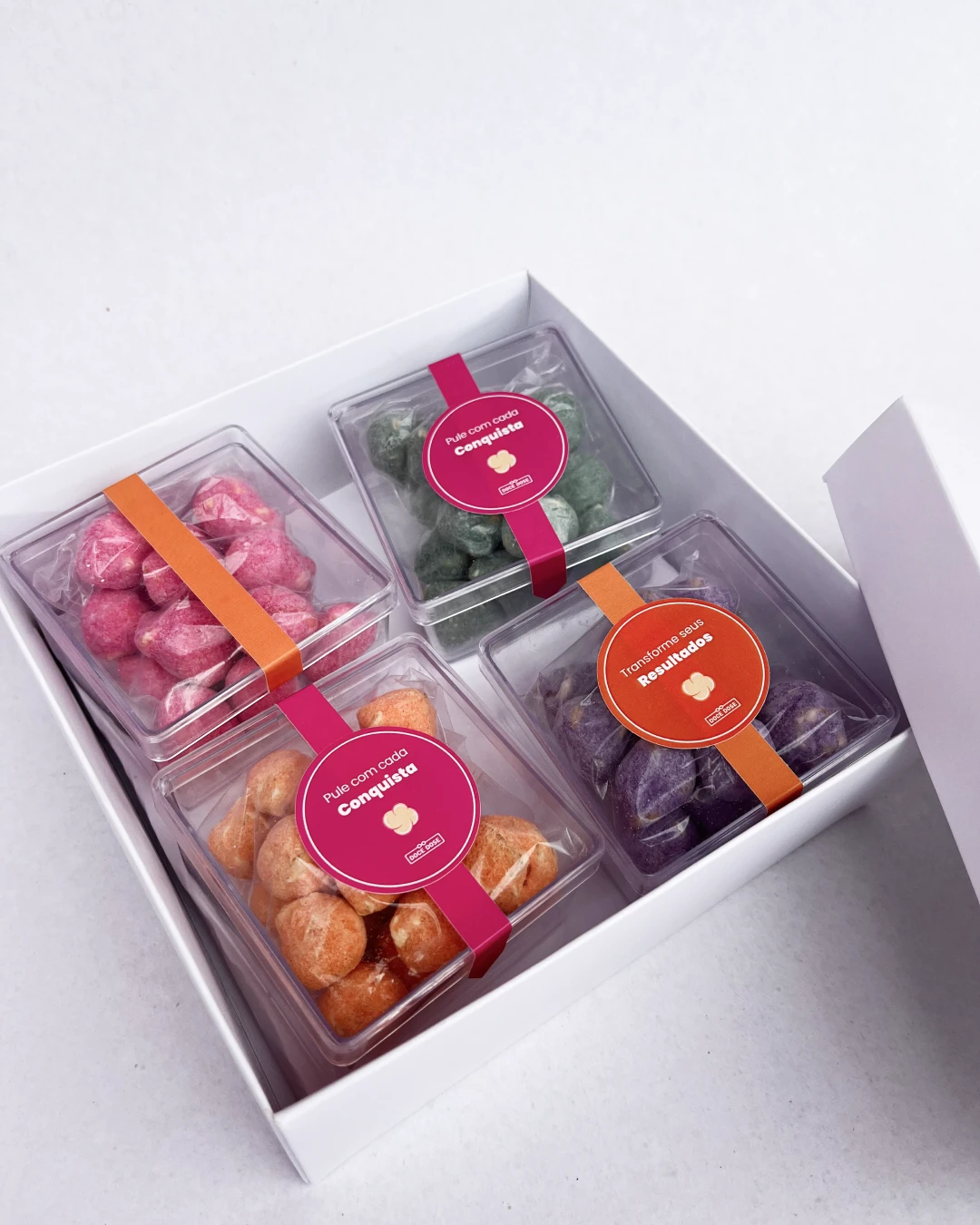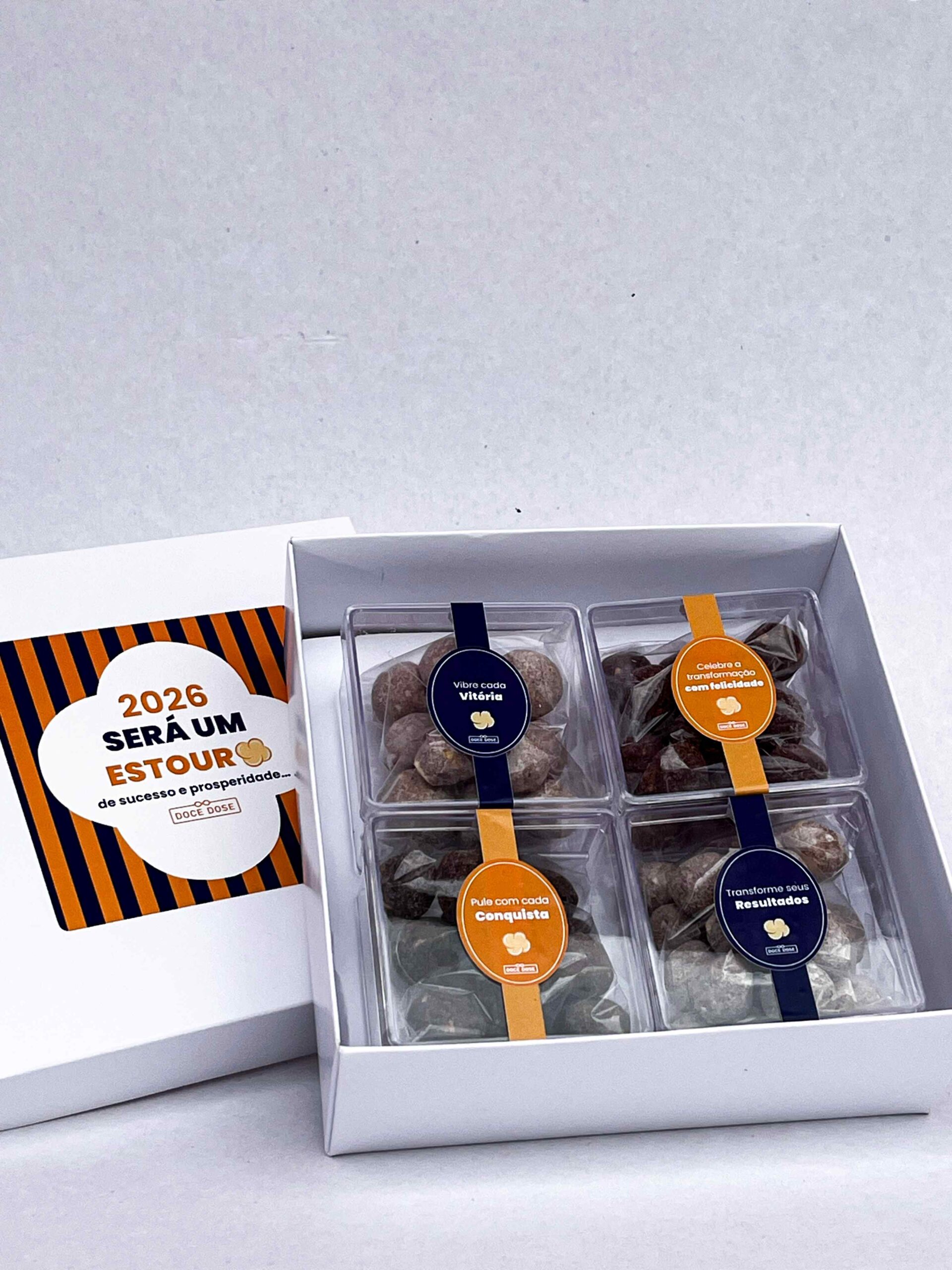 Dentro dessa sofisticada caixa, você vai encontrar 4 motivos para explodir de emoção. Lindas caixinhas transparentes de pipocas gourmet lacradas com rótulos super personalizados que imprimem elegância e personalidade. Ideal para falar de diversidade, valores da empresa, palavras de motivação e o que mais sua imaginação desejar. Ela é mais que um brinde: é uma experiência perfeita para agradecer, reconhecer e surpreender quem faz parte da sua jornada. Valorize conquistas e estabeleça laços belíssimos. Assim como cada grão se transforma em pipoca, esse brinde simboliza a evolução e o esforço de quem faz a diferença. O brilho reflete a leveza das pipocas gourmet e traz mensagens de motivação, descontração e otimismo. Um brinde criativo e cheio de significado, perfeito para inspirar equipes, agradecer clientes e fortalecer conexões.
