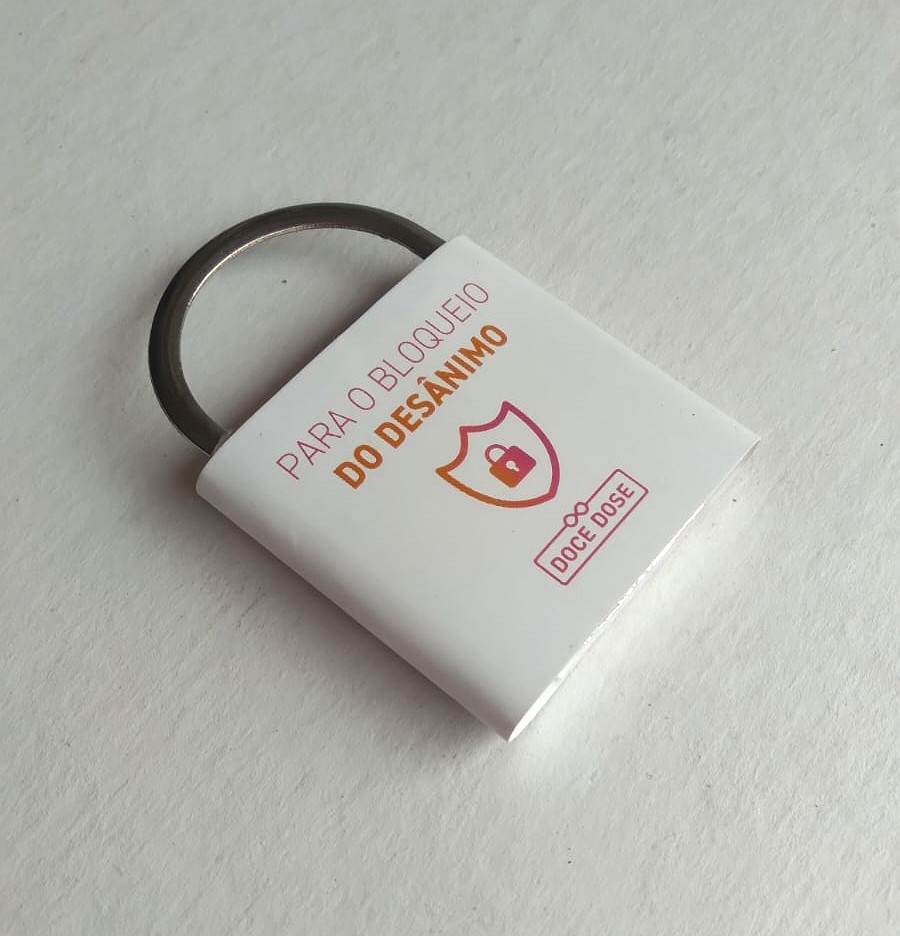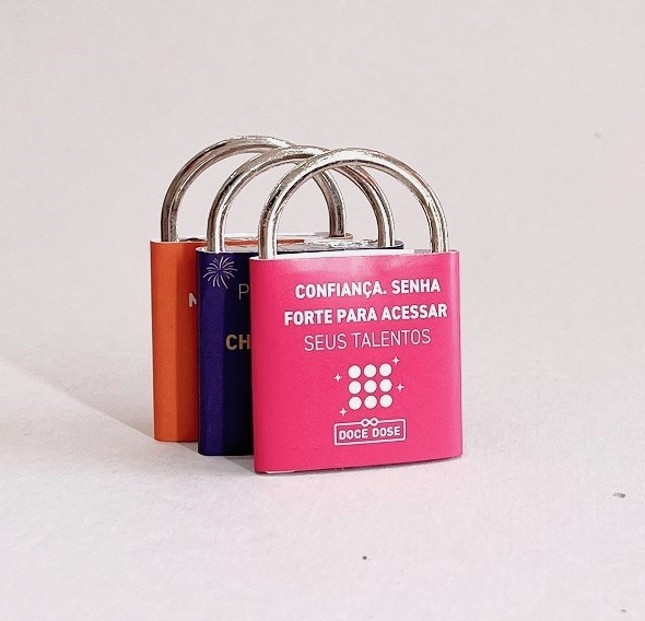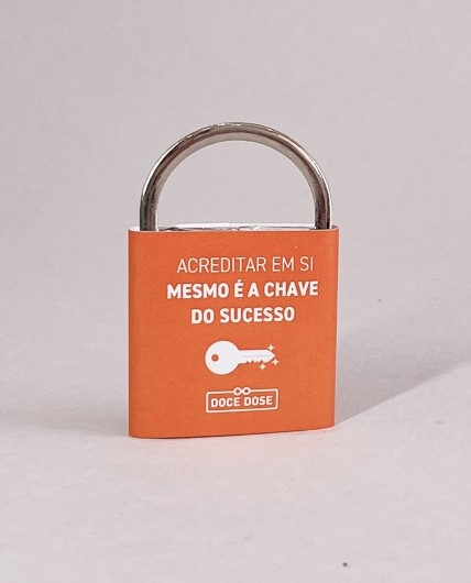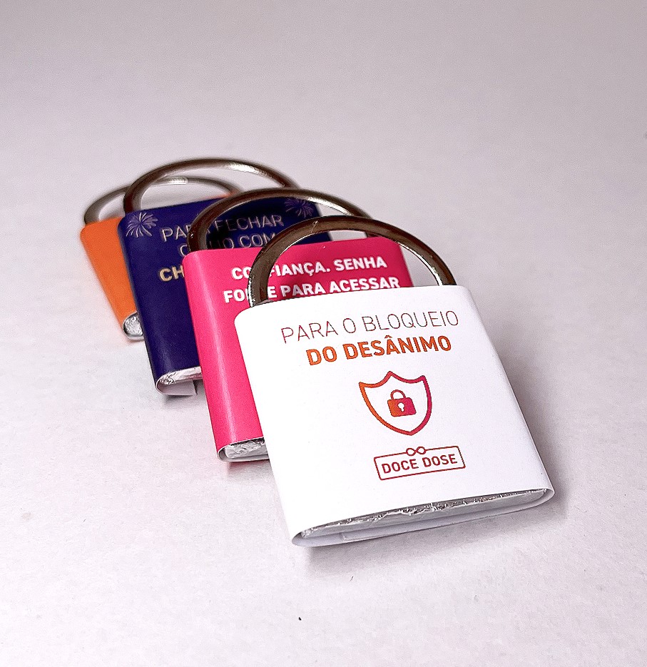 O formato de cadeado transforma o chocolate em um símbolo visual forte. A combinação entre conceito, mensagem personalizada e produto comestível gera conexão emocional, reforça valores e entrega um impacto positivo e memorável.