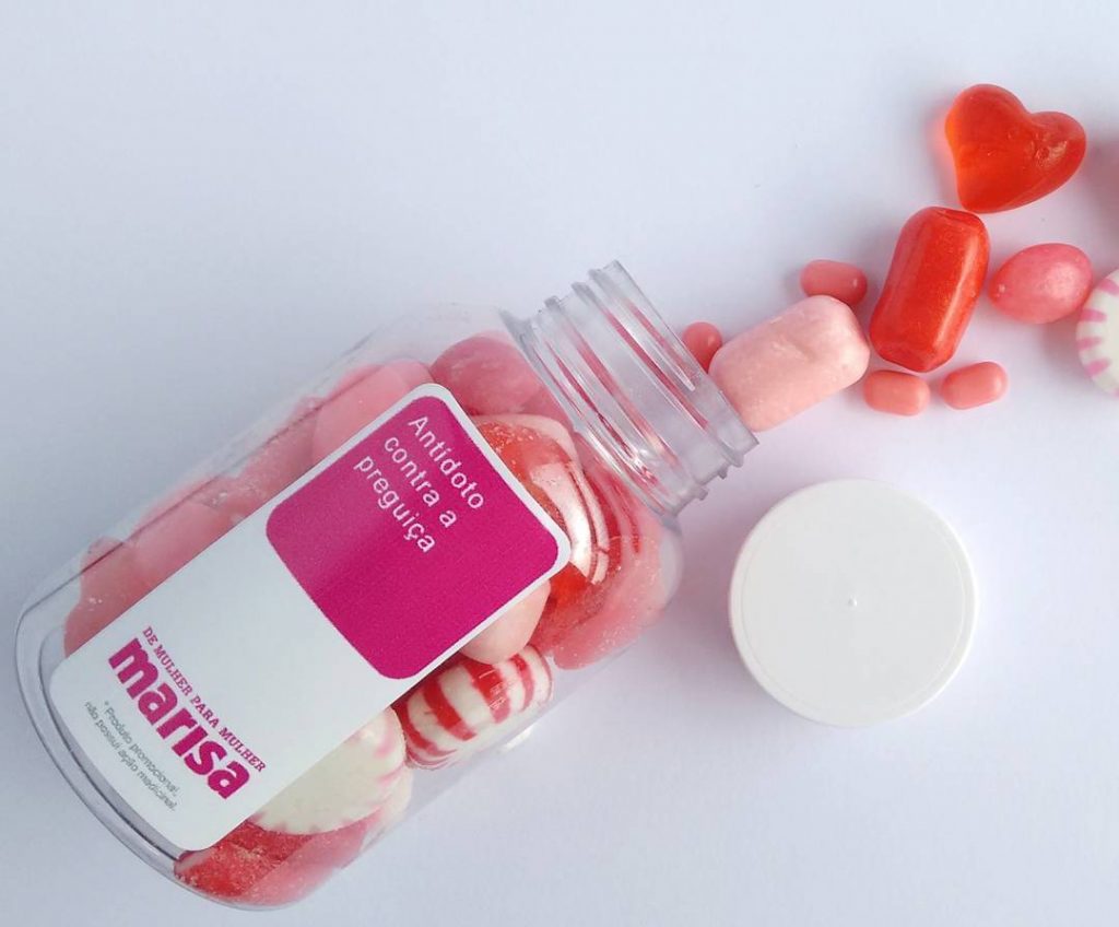A transparência do frasco, combinada às cores do conteúdo e à mensagem personalizada, potencializa o resultado da ação. O conjunto dos elementos valoriza o brinde e gera uma percepção positiva, reforçando cuidado, qualidade e identidade da marca.